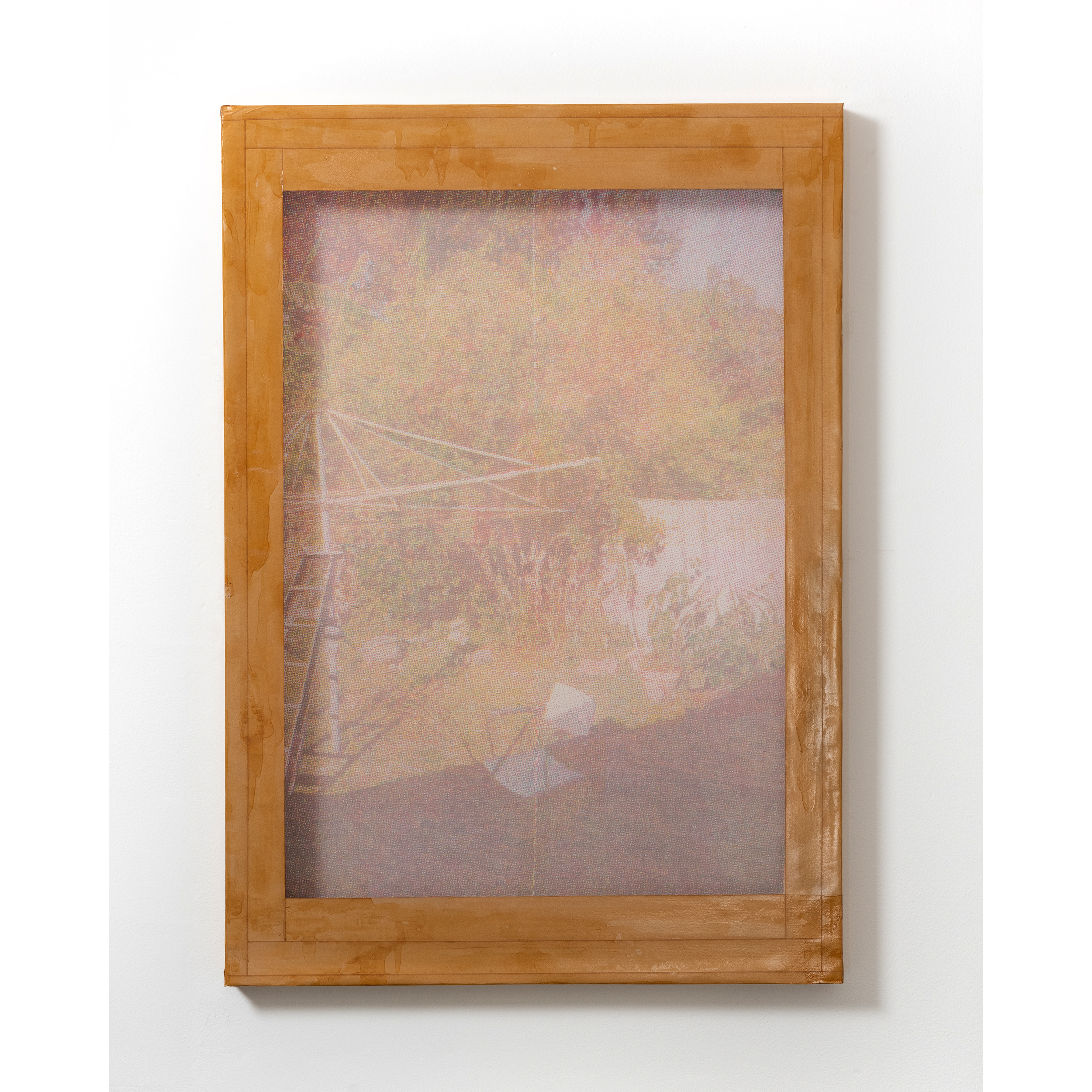 Margin, 2025Silk organza, water-based pigment, kikusui tape, shellac, hardwood80 x 100 x 5 cm Photograph Peter Morgan